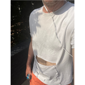 Charlie Porter and the ‘letter box’ t-shirt on their way to the British Library (Photo: Charlie Porter, with thanks)