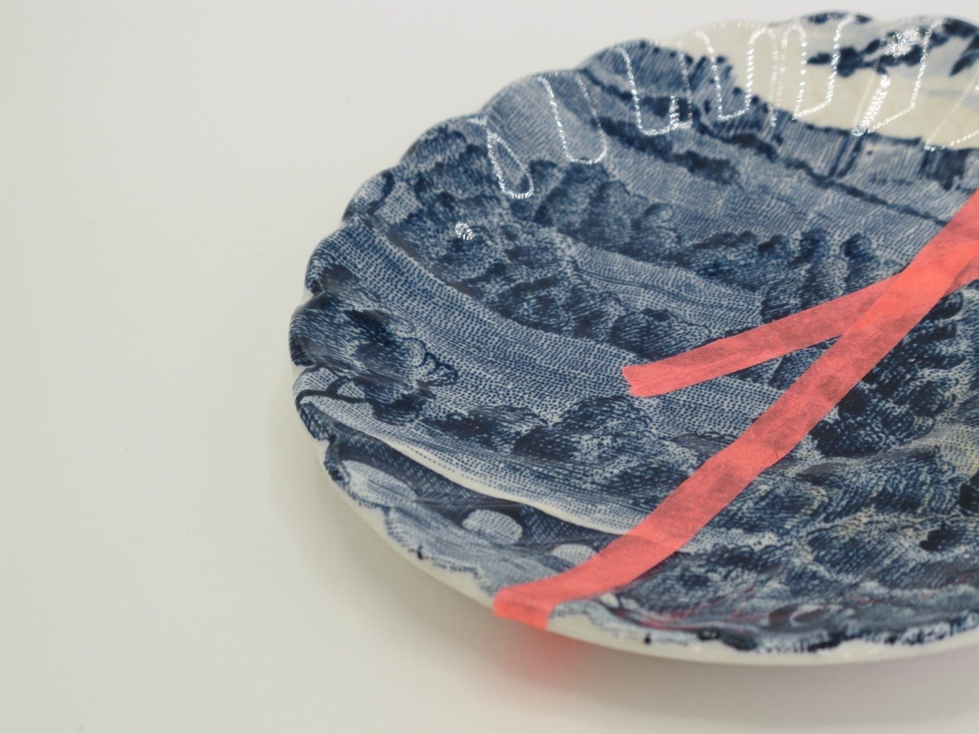 Washi Tape Plate, Bridget Harvey. Blue and White broken plate, pink washi tape (Photo: Bridget Harvey, shared with permission)