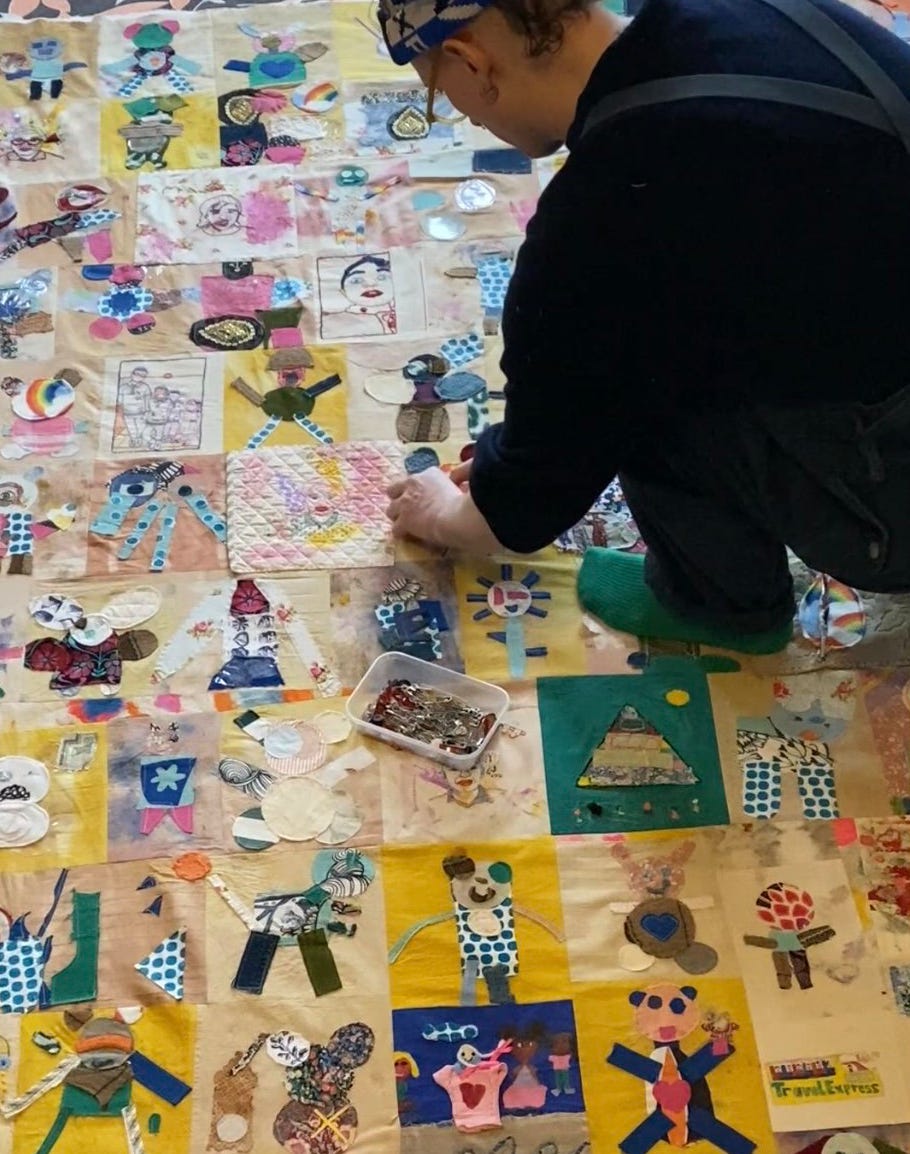 I’ve resisted a deep dive into the idea of the transitional object, enough already and I need something to start the next chapter. But continuing this theme of attachment, I’d like to share a very special project to finish. Way back in February I spoke with Veronica Rowlands, one of my ex-students, and Russell Barratt, textile artist and quilt maker. They’ve been collaborating on a quilt project with Year 4 pupils and parents at Old Ford Primary School in Bow, East London, where Veronica works as a Room 13 artist-in-residence. The project ‘Transitional Memories: Intergenerational Quilting’ was funded by Action for Bow, and invited three classes of nine year olds to think about objects that mattered to them, their special toys. The children drew the toys from their imagination, their drawings translated into fabric collages and pieced together to make an impressive 2 x 3 metre quilt, complete with batting and backing. Veronica anticipated drawings of game consoles and was surprised that almost every child drew a soft toy, using them to narrate personal stories of kinship, love and attachment. It was Russell’s job to combine the individual squares into a lively and joyful patchwork quilt, which will be displayed in the school’s stairwell. I enjoy that this project was funded locally, made locally and will stay local. A proper sense of shared belonging and a good place to end.