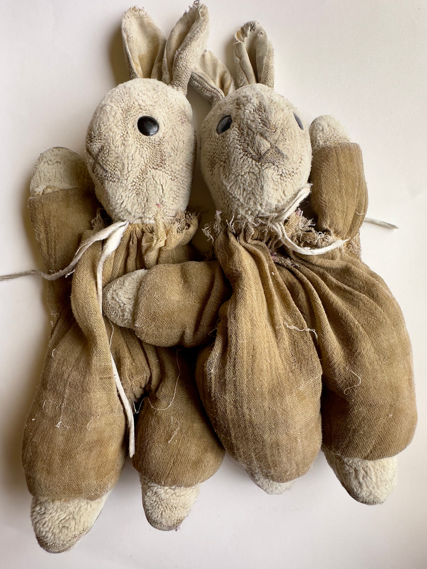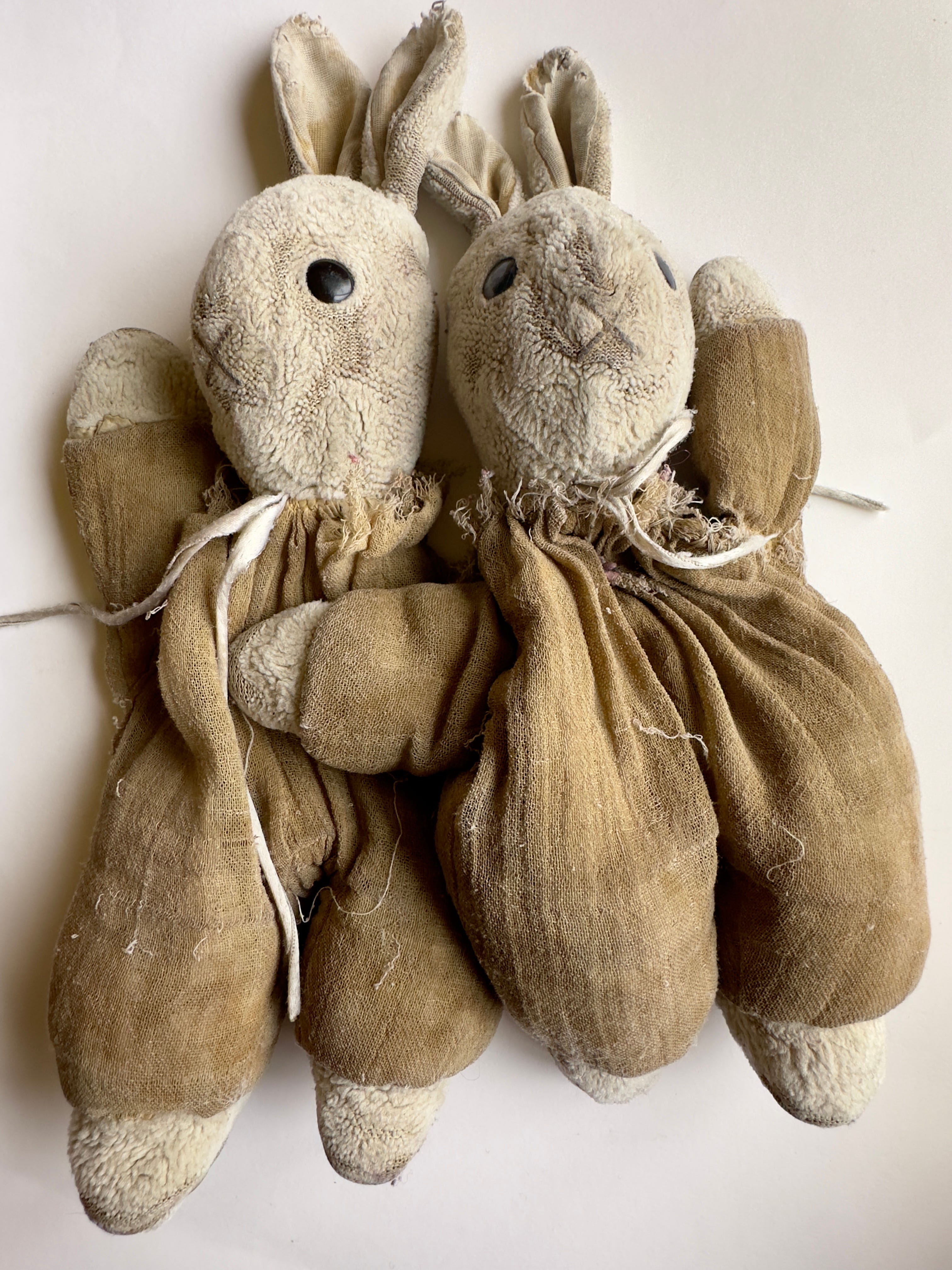 Soft objects – teddies, blankets, rabbits – can be especially evocative. This is the case with Sarah-Joy’s Peter and John, proper life-long companions, her relationship with them extending well beyond childhood. Our collaboration explores some of this attachment, there’s going to be a publication to support the work, so I’m not sharing too much here, yet.